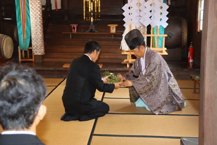 秋季大祭・当番祭を前に… 区当番&新講が注連縄奉納 令和4年10月9日