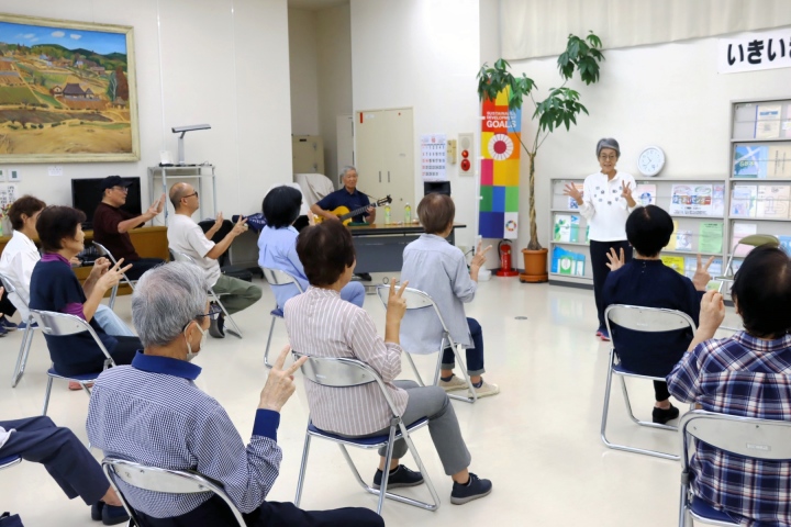 さて、10月のふれあい交流会は「健康介護予防の笑顔の体操とギターとともに歌おう」と題して、身体や口を動かすように計画しています。