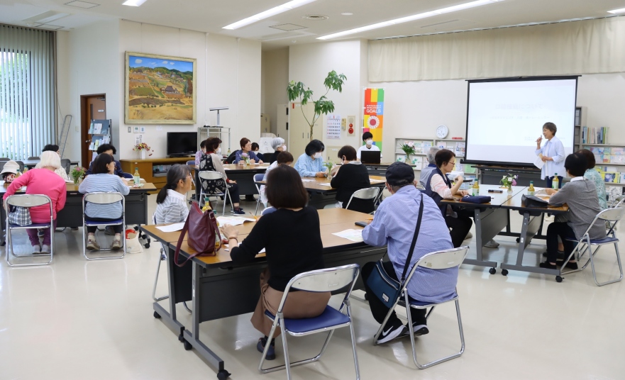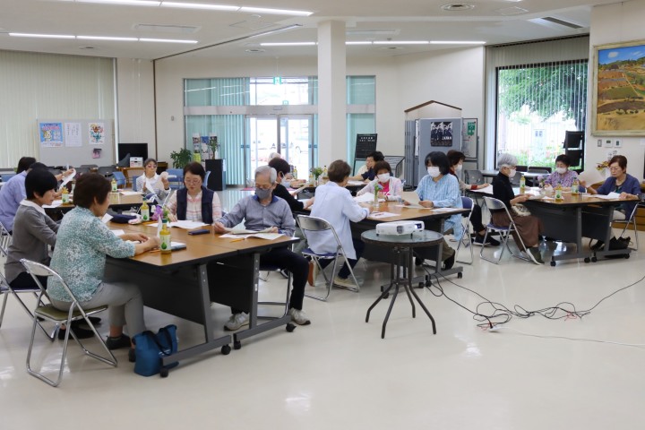 サロンあすはがボランティアグループじあいを招いて7月12日、つどえ~るでふれあい交流会を開き35人が参加しました。