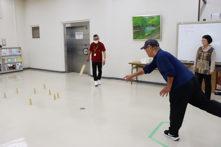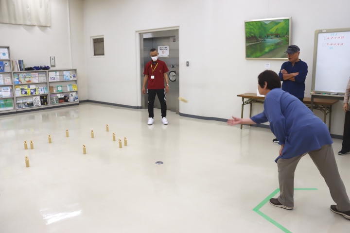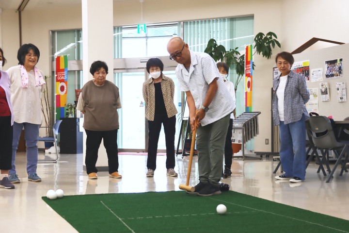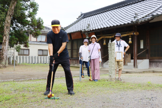 三世代グラウンドゴルフ大会(倉掛少年団主催)が9月15日、郷社足次山神社境内で開かれサロンあすはの会員ら35人が参加しました。