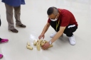 午前10時20分、森典子会長の開会挨拶に続いて、講師の山本励子先生から多肉植物の寄せ植え作りに関する説明を聞き、さっそくにが作業開始。事前に配られたカラフルで可愛いサボテン科の植物などを直径約10cmの鉢へ植え込みました。