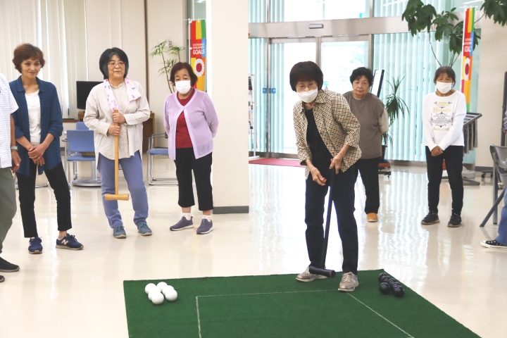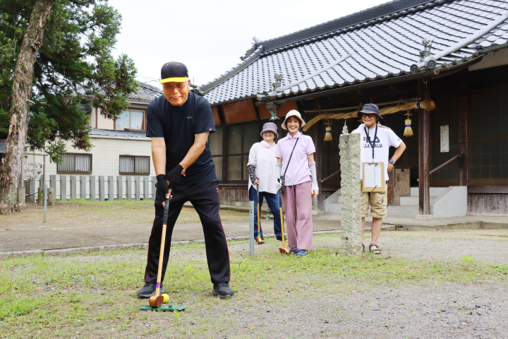 サロンあすはが郷社足次山神社で6月17日、グラウンドゴルフ交流会を開き関係者19人が参加しました。