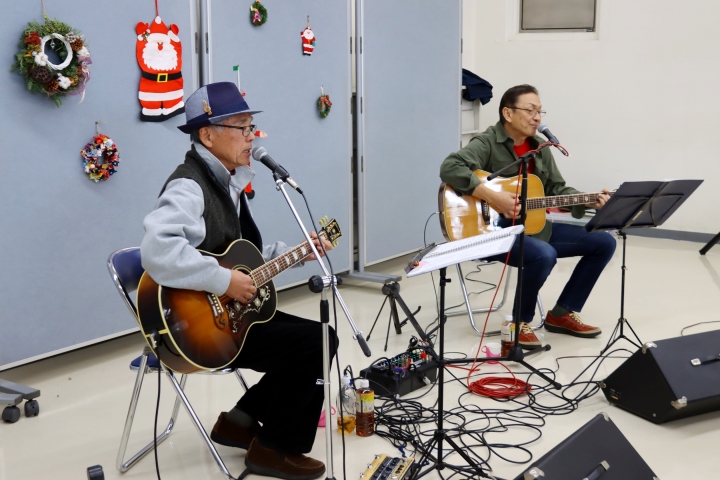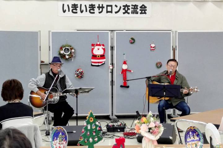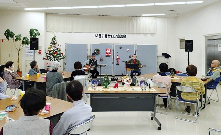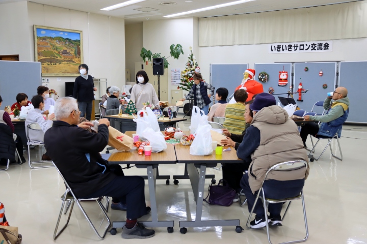 サロンあすはクリスマス会がつどえ~るで12月20日、会員ら約40人が参加して開かれました。