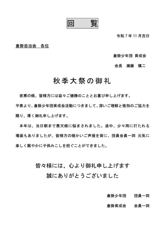 | 令和7年度 倉掛少年団育成会 役員 | ||