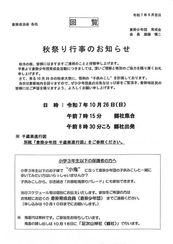 井 原 町 秋 季 大 祭 子どもみこし、元気に町内一巡 2025年(令和7年)10月26日